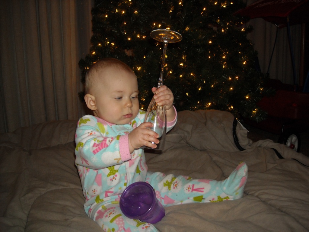 Mom told me that we would have champagne for New Year's. WHAT! You expected me to drink my champagne (water) out of this sippy cup! I want a real glass.........what Mom? You said it's upside down? Stop telling me what to do, this is how Harley drinks out of glasses!